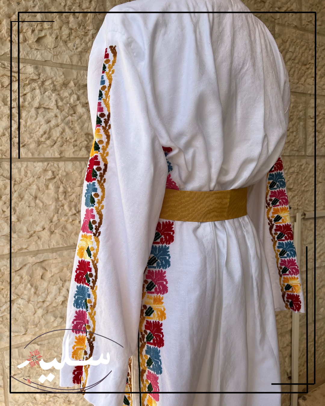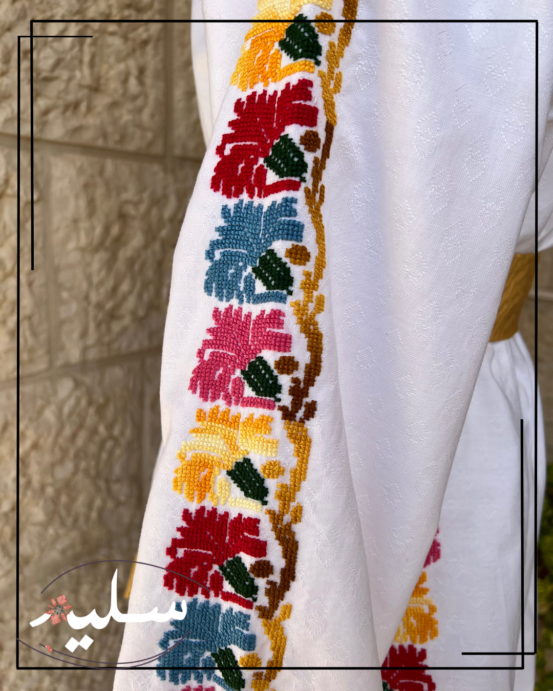 عباية القرنفل من سليم، مصنوعة من قطن مدمج ناعم، ومبطنة بقماش أبيض مريح، مثالية للتجمعات النسائية الأنيقة والمناسبات السعيدة. مزينة بتطريز يدوي بنقوش زهور القرنفل على الجانبين. كما تأتي مع حزام أصفر لإضفاء لمسة أنثوية مميزة.