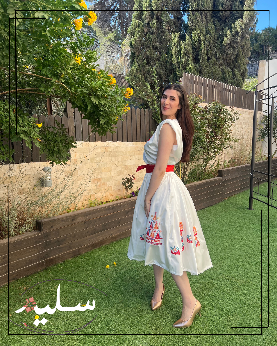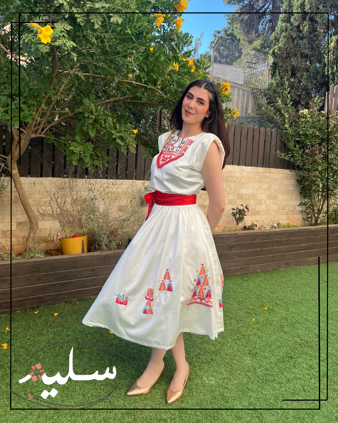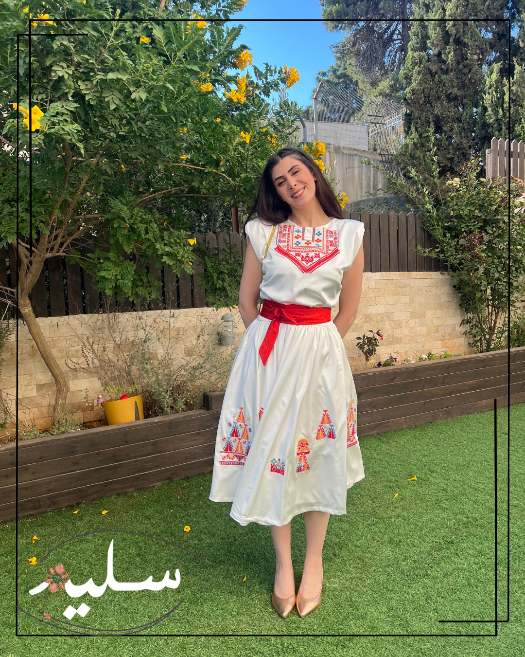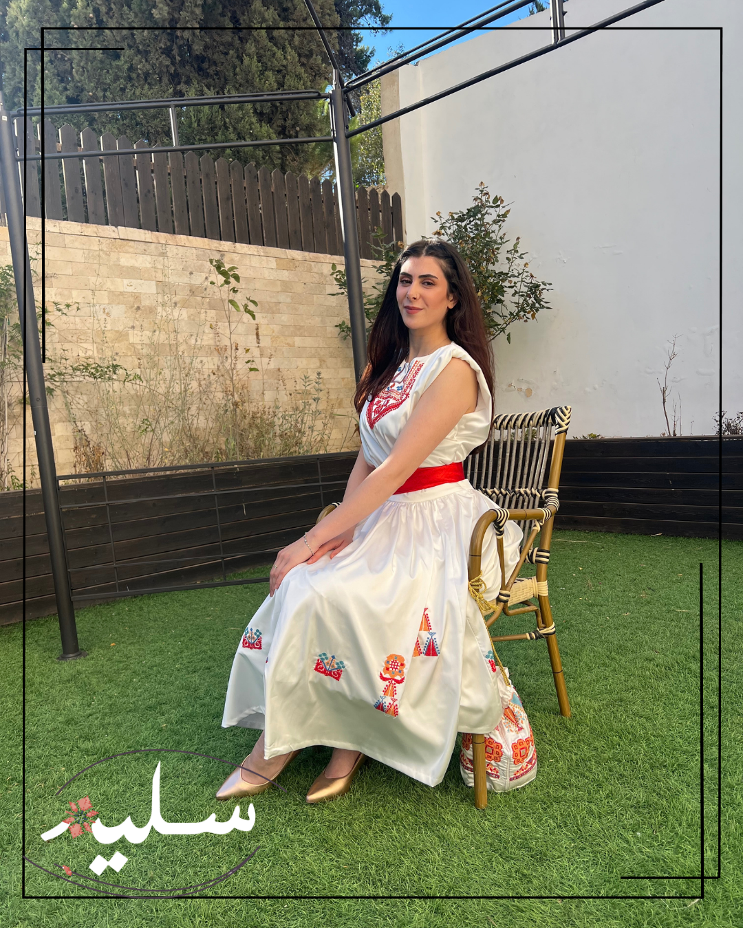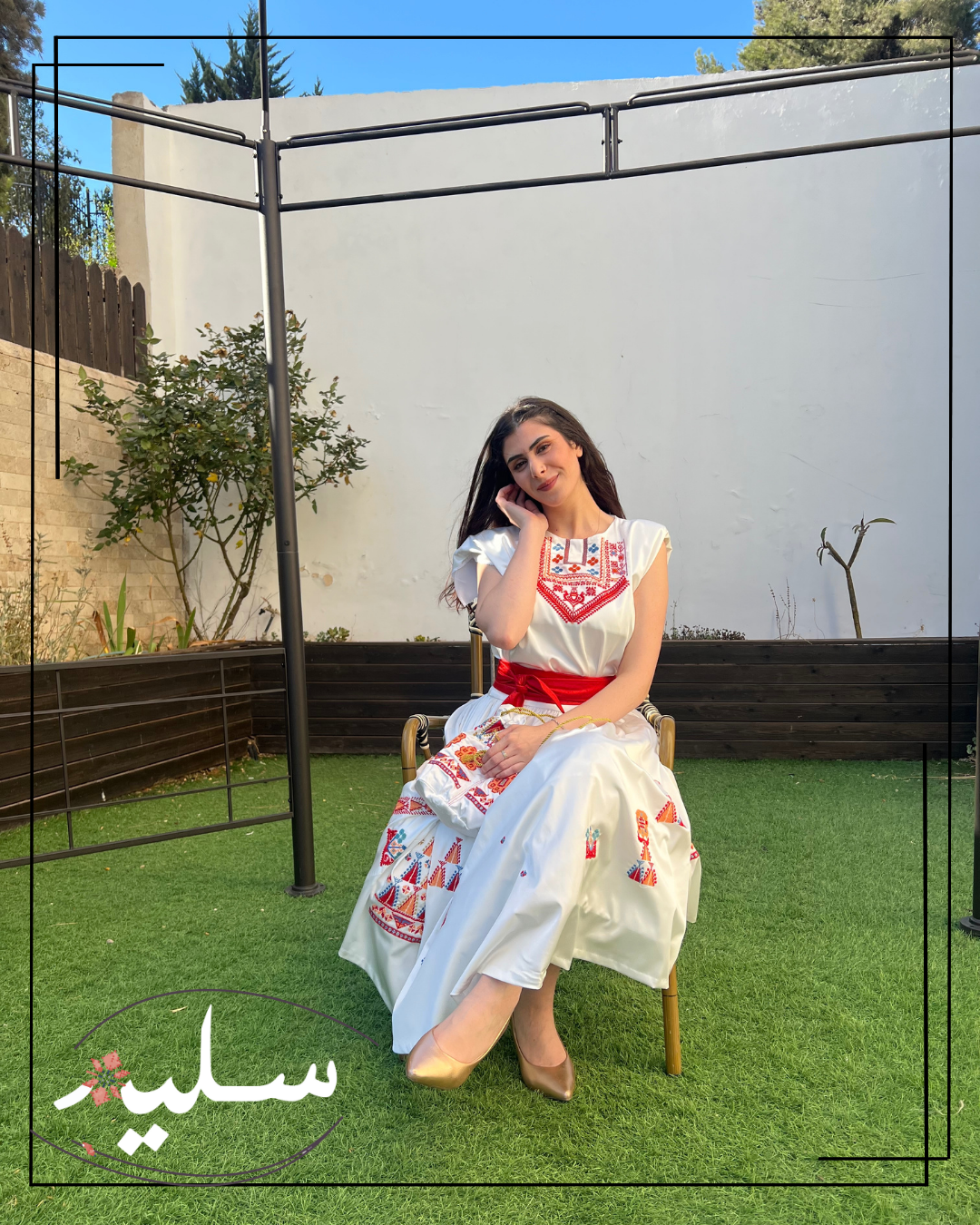 A luxurious dazzling dress designed for an unforgettable presence on your special occasion. Made from a stunning silky fabric that shines with femininity and elegance, featuring a comfortable and stylish cut with raised shoulders that boost confidence and create a distinctive look. The piece is adorned with artistic embroidery in the form of colorful veins with bright hues and shimmering golden threads, adding a touch of joy and luxury perfectly suited to the celebratory atmosphere. The dress comes with a soft lining and a separate inner skirt that provides an elegant flowing volume yet is light and comfortable for movement. To complete the charm, the dress is accompanied by a special hand-embroidered bag, designed harmoniously with the dress details and embroidery colors, ensuring you are elegant down to the finest details.