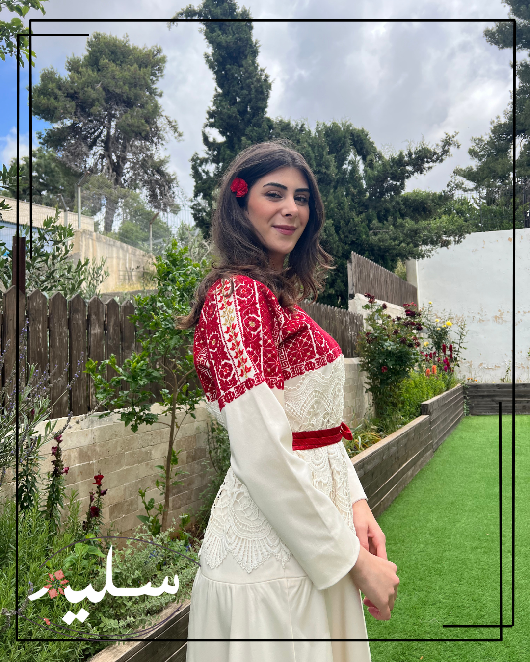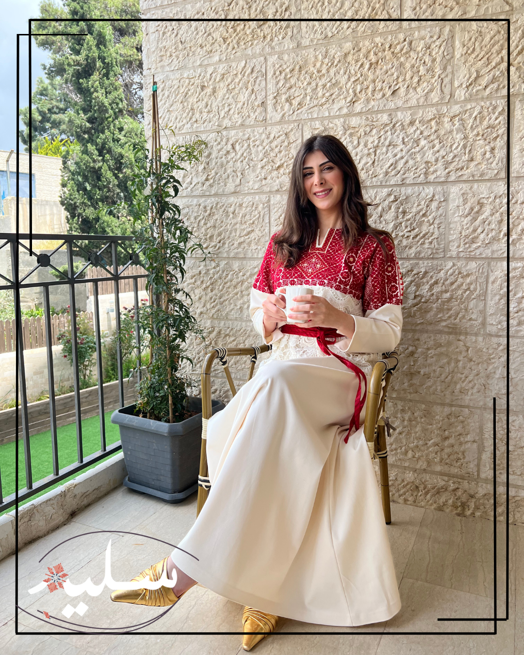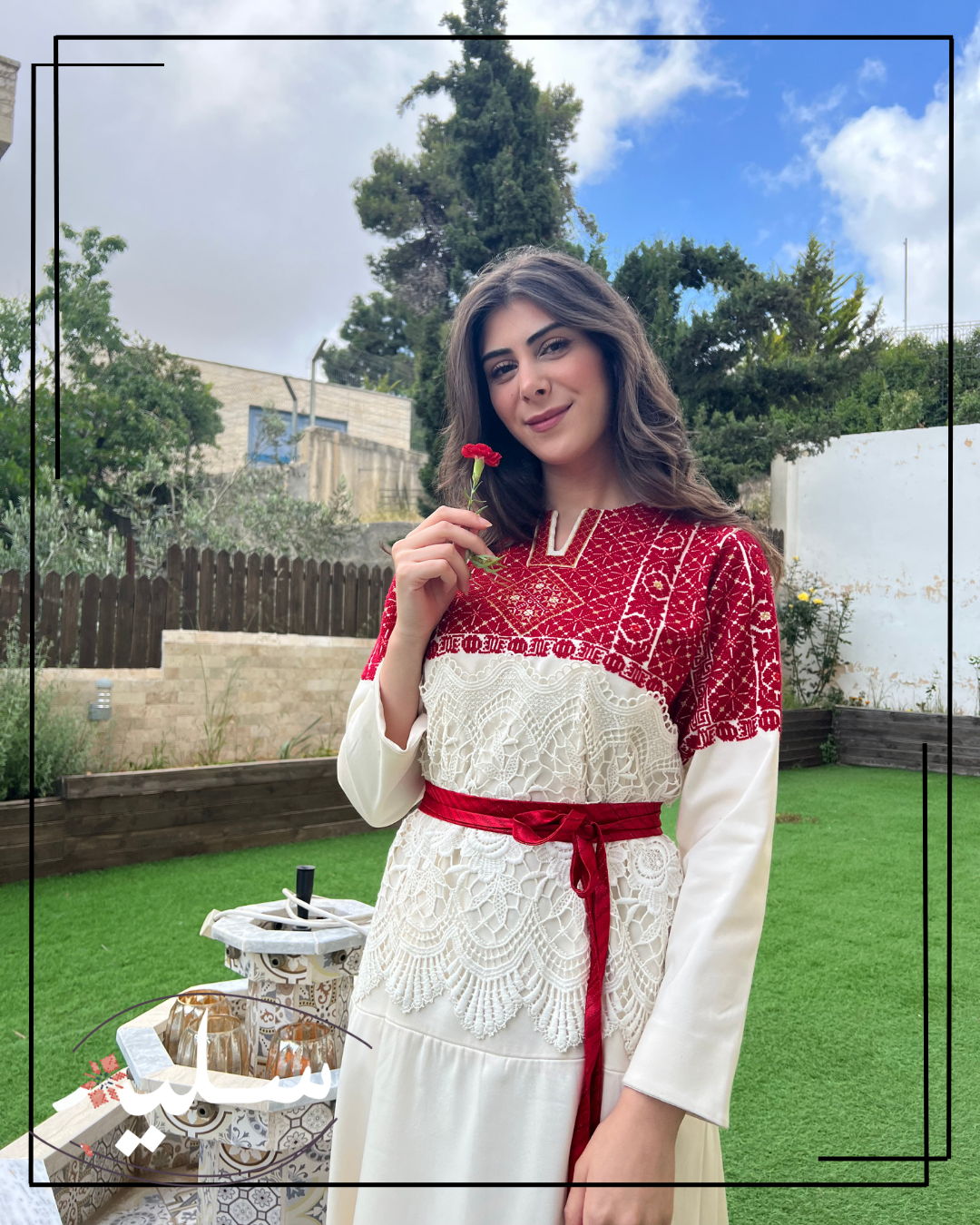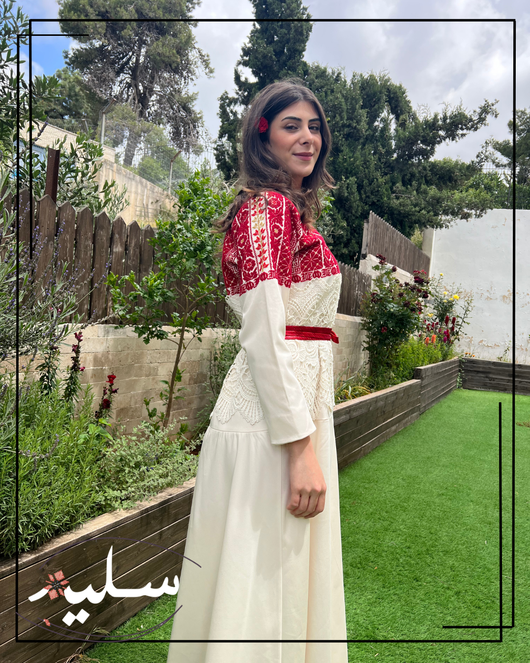 فستان رسمي مبتكر من سليم للمناسبات الفاخرة. مطرز بدرجات اللون الأحمر وممزوج بخيوط ذهبية. تزين هذه القطعة أنماط تطريز تقليدية، نادرًا ما يتم تكرارها. يرافق الفستان حزام أحمر من قماش دمشقي بخيوط معدنية. الفستان مصنوع من قطن مدمج عالي الجودة ومزين بقماش جوبير حول الخصر مما يضيف لمسة فريدة تشبه استخدام الوسائط المختلطة في الفن! قطعة استثنائية حقًا من سليم.