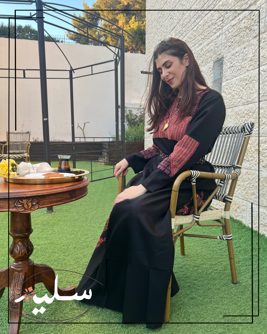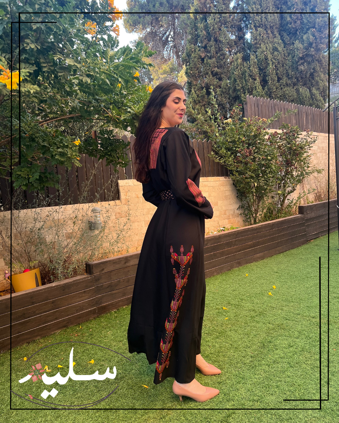 ثوب أسود مميز بجماله وهادي بألوانه. التطريز مرصوص بعروق تقليدية. الثوب بتصميم عصري بكسرات أسفل ووسط الثوب من الامام والخلف. الجوانب مطرزة بنقلة تقليدية تتناغم مع عروق القبة والأكمام والظهر. الثوب مقاس يناسب المتوسط والكبير