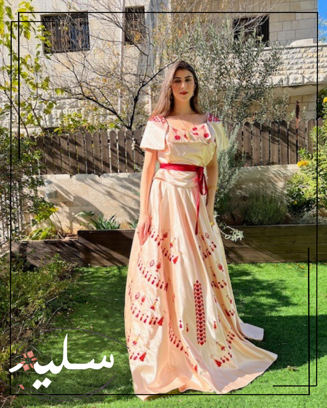 تألقي بطقمك الحريري المطرز بالخيوط اللامعة باللون الأحمر. طقم غزل الشمس هو قطعة استثنائية ومبتكرة لمناسبتك السعيدة. هذا الطقم مصمم لحفلات الحناء، وهو حفل تقليدي يتم إجراؤه للعروس قبل الزفاف. بتصميمه العصري، يجعلك تتألقين كالنجمة في الحفل. يتضمن الطقم قطعتين، إلى جانب حزام يمكن لفه مرتين، مصنوع من قماش دمشقي ممزوج بخيوط معدنية، مصمم ليكون ناعمًا مثل الطقم. تأتي التنورة مع تنورة داخلية تضيف حجمًا ودعمًا للتنورة الرئيسية ويمكن إزالتها حسب الرغبة. تم تصميم تطريز الكتف لإضفاء مظهر ملكي واثق , أنيق لتطوني الأميرة. يتميز التطريز المصنوع يدويًا بأنماط الطيور والقمح التقليدية بألوان نابضة بالحياة.