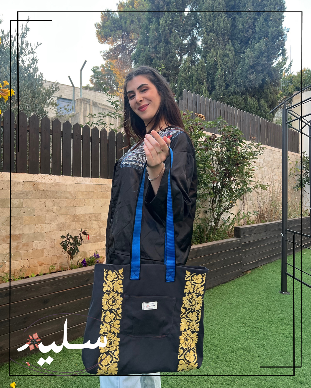 An embroidered bag featuring traditional, old and and beautiful embroidered motif. The bag is padded and reinforced, and includes both an external and an internal pocket. The strap is made of durable royal blue strap that adds contrast and uniqueness to the design. With its distinctive color, the bag is suitable for various outings, making it a special piece for the woman of refined taste.