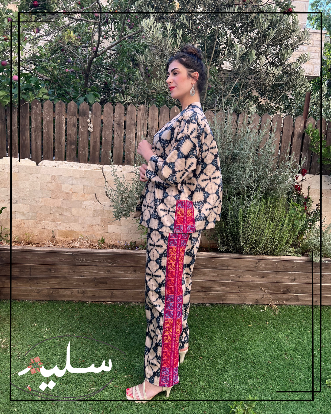 طقم مميز مكون من ثلاثة قطع مميزة , قماش فاخر والتطريز مرصوص على جوانب البنطلون والجاكيت بشكل راقي .البلوزة من الحرير المدمج بدون اكمام تناسب الصيف و مناسباته الجميله مطرز عليها بنفس العرق بالوسط.